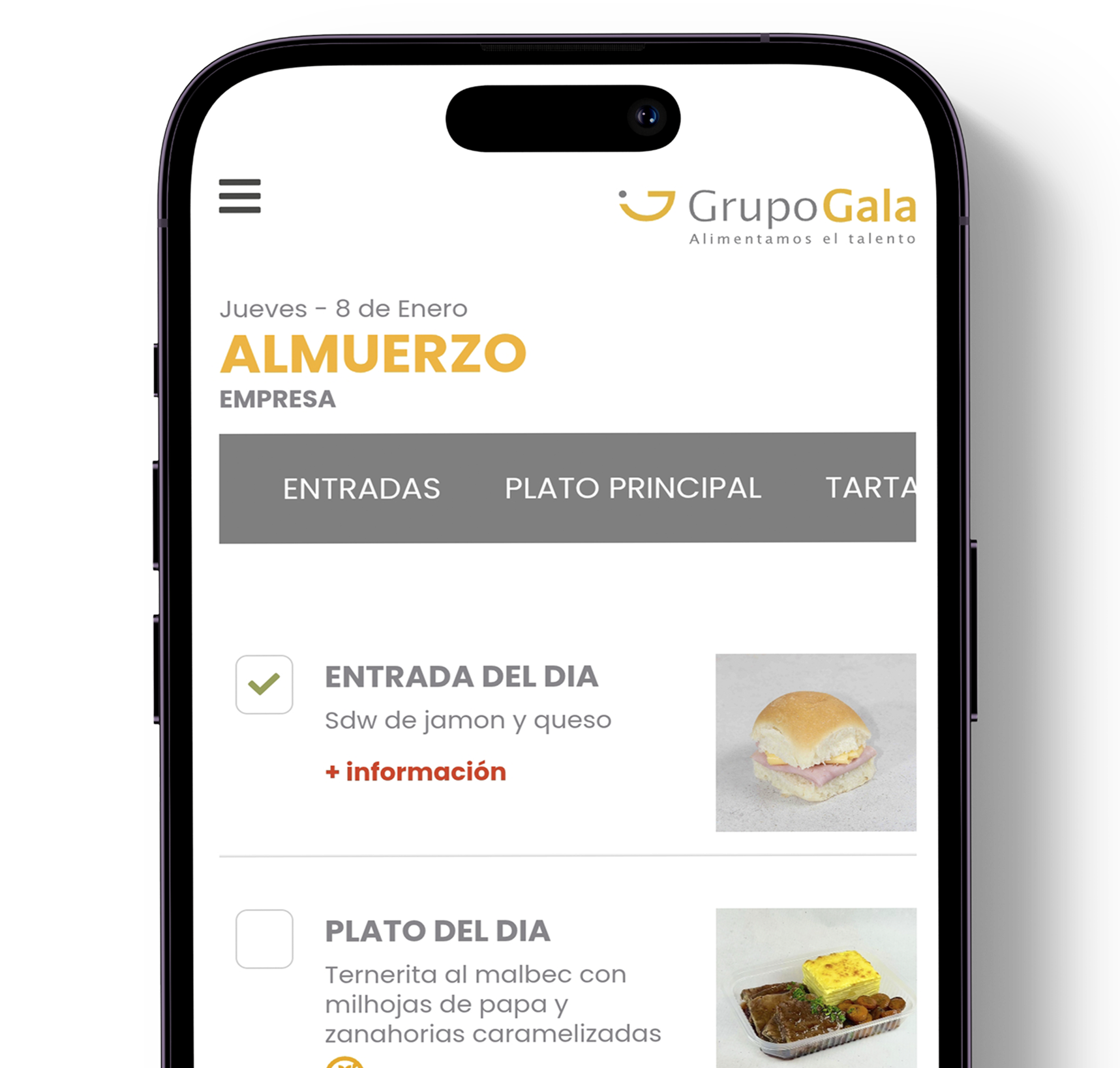 Nuestra plataforma permite que cada empleado elija su menú diario desde el celular o la web, mientras RRHH mantiene el control total del servicio.