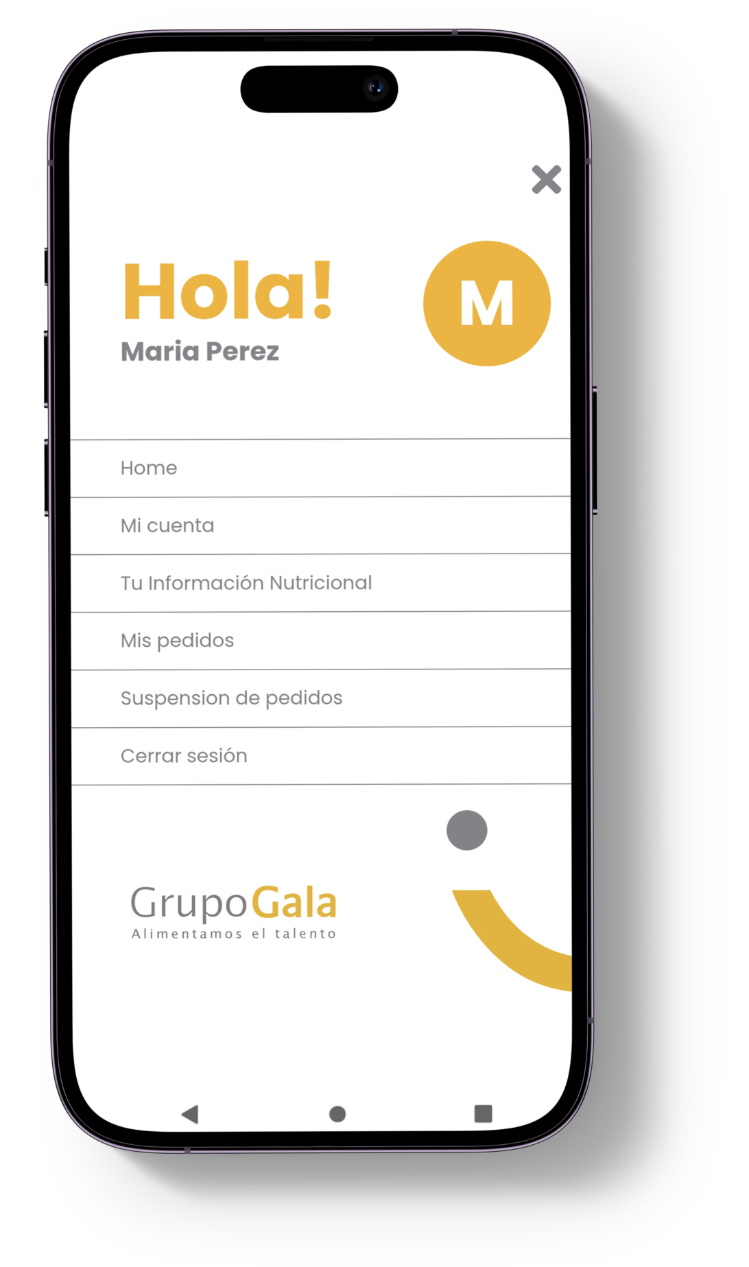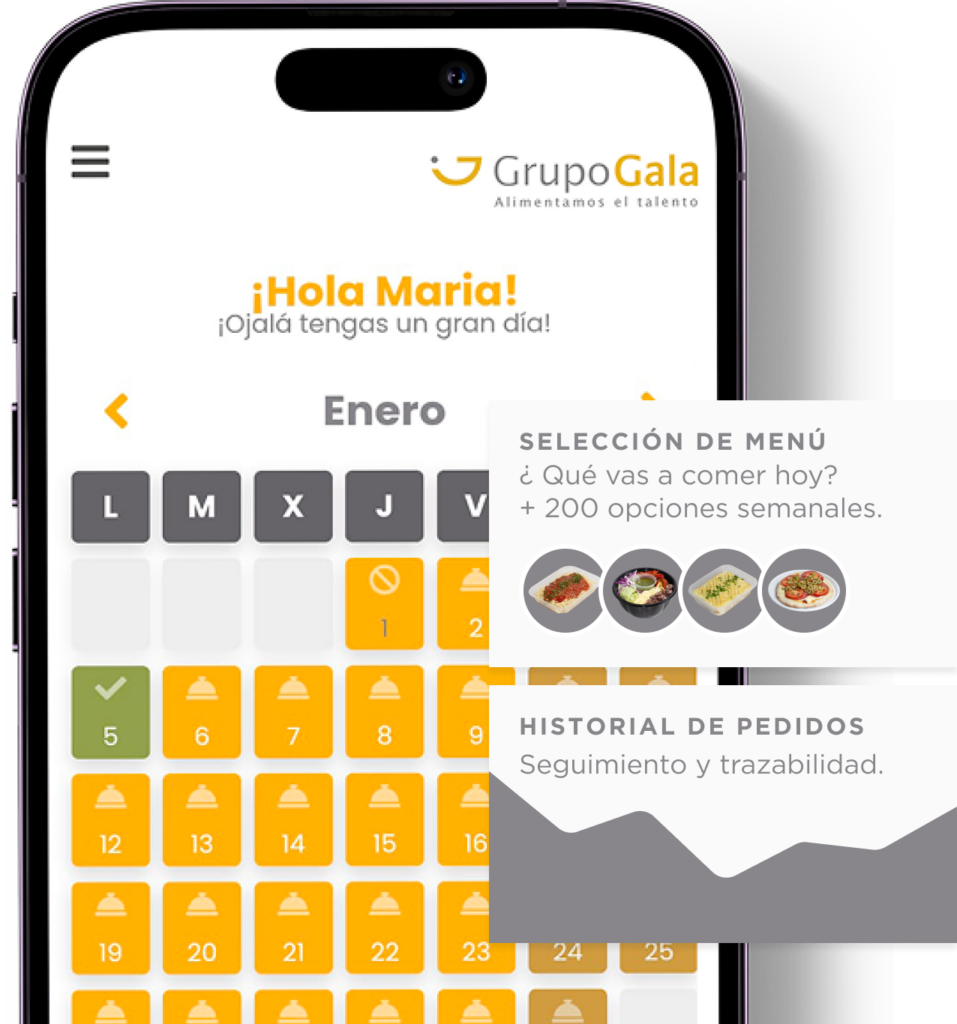 Cada empleado puede elegir, modificar o cancelar su menú diario o semanal desde la app, de forma rápida e intuitiva.